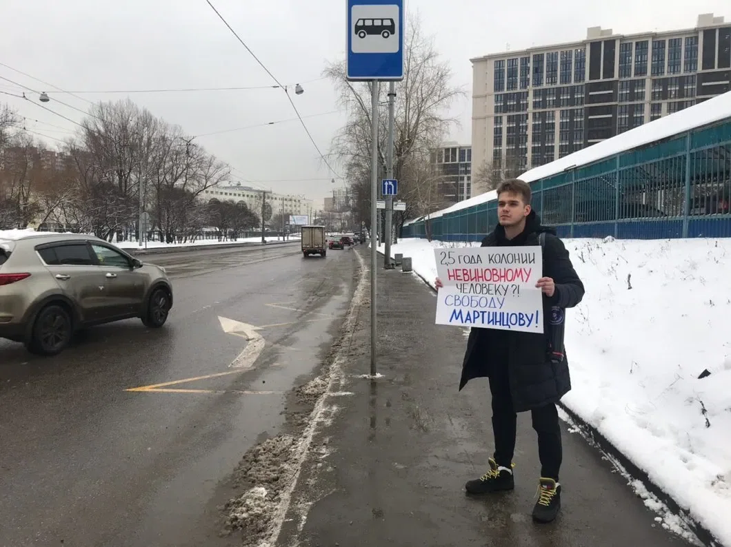 Перед судом прошли одиночные пикеты в поддержку Мартинцова и Лесных.
