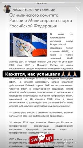 Спортсмены приветствовали эту рекомендацию. Российская прыгунья с шестом, член комиссии спортсменов ВФЛА Анжелика Сидорова написала в своем инстаграме, что "кажется, нас услышали".