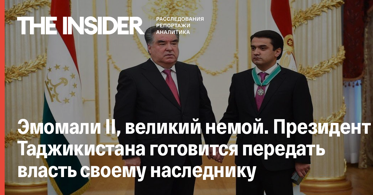 Президент Таджикистана Эмомали Рахмон стремится не отставать от коллег по постсоветскому пространству и готовится реализовать свою версию «транзита власти». В отличие от Назарбаева и Путина, у него есть прямой наследник — сын Рустам, и дело только за тем, как именно оформить передачу формальных полномочий главы республики, фактически оставаясь «отцом нации». Пока что Рустами Эмомали по кличке «великий немой» — мэр столицы, но, скорее всего, после мартовских выборов в парламент он займет кресло спикера и станет вторым лицом в государстве. А уже осенью в стране, которая формально является демократической республикой, может состояться антиконституционная передача власти и фактическое превращение в династическую монархию.