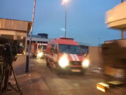 Территория вокруг CКК обнесена строительным забором, после обрушения кровли у входа стояли машины МЧС, ГИБДД, скорой помощи, в ворота постоянно въезжали и выезжали спасатели, пожарные, врачи.