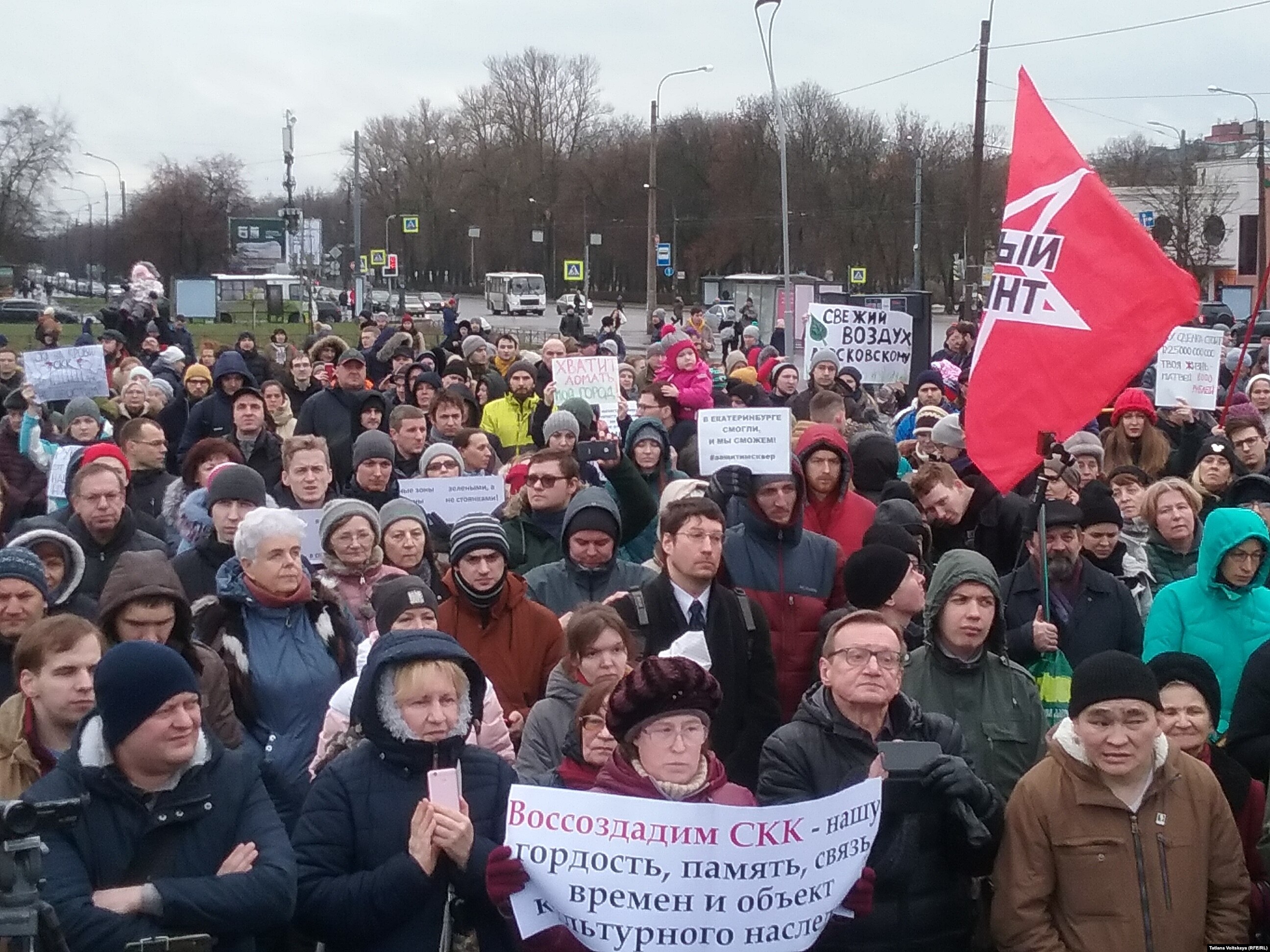 В Петербурге на углу Бассейной улицы и проспекта Юрия Гагарина собралось больше 1000 человек – гораздо больше, чем когда-либо собиралось на защиту СКК. Предполагалось, что митинг будет в защиту СКК "Петербургский", но когда его снесли, возмущенные защитники решили не отказываться от акции.