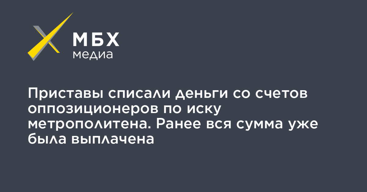 Приставы списали деньги со счетов оппозиционеров по иску метрополитена. Ранее вся сумма уже была выплачена