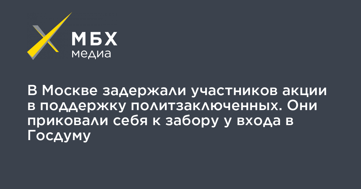 В Москве задержали участников акции в поддержку политзаключенных. Они приковали себя к забору у входа в Госдуму