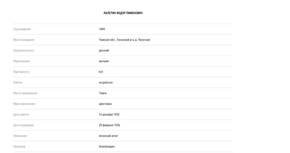 Автор: base.memo.ru Обвиняемый Федор Лалетин был учителем. Когда почуял, что его могут «взять», решил покинуть Томск. С поезда его и сняли. На допросе вел себя вполне спокойно, рассказал свой жизненный путь. О пребывании за границей в Харбине, о своих детях – сыне и дочери, проживающих в Америке, переписке с ними с применением специально разработанного кода и шифра и об обстоятельствах его вербовки американской разведкой. Причем никаких мер морального или физического воздействия со стороны следователя к нему не применялось. Это я могу свидетельствовать определенно. Из показаний Лалетина вытекало, что, будучи завербованным американской разведкой, он занимался сбором данных шпионского характера, которые сообщая в письмах по специальному коду. В разное время он завербовал семь человек из числа советских граждан, создав, таким образом, резидентуру и став резидентом американской разведки. В числе завербованных им агентов он назвал профессора Ревердатто, академика Владимира Филатова — известного в стране хирурга по глазным болезням, некоего Кузнецова из Красноярска. Других не помню.