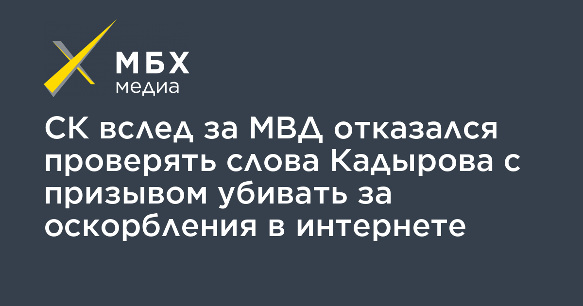 Следственный комитет Чечни отказался проверять слова главы республики Рамзана Кадырова с призывом убивать и сажать за оскорбления в интернете, сообщил «МБХ медиа» глава «Комитета против пыток» Игорь Каляпин, который получил соответствующий ответ от ведомства.