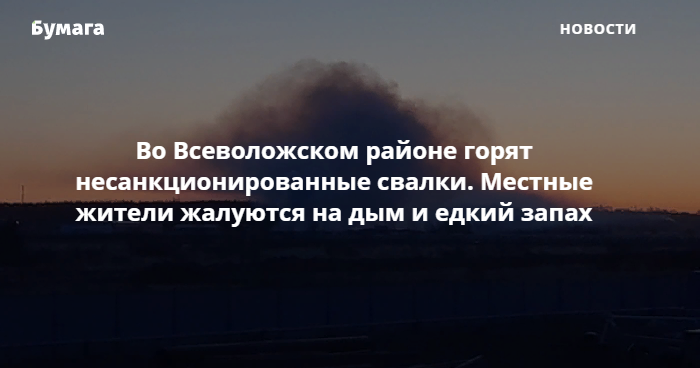 Со вчерашней ночи в деревне Старая во Всеволожском районе горят несанкционированные свалки, сообщает 47news.ru со ссылкой на пресс-службу ГУ МЧС по Ленобласти. Местные жители жалуются в соцсетях на густой дым и едкий запах.