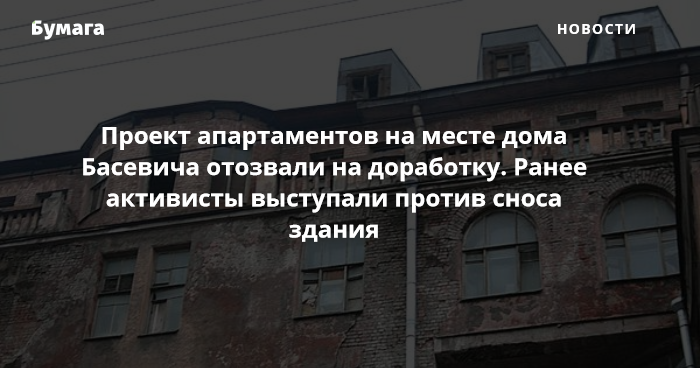 Проект апартаментов в доме Басевича отозвали