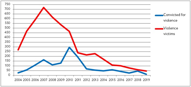Chart 5. Trends in Violent Hate Crimes: the Convicted and the Victims (2004–2019)