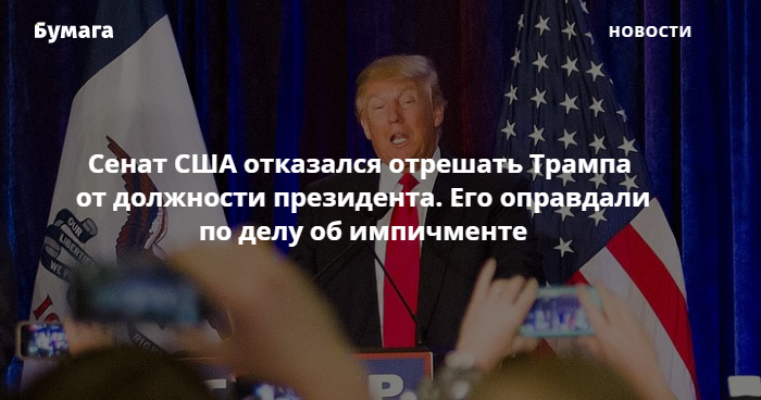 Сенат оправдал президента США Дональда Трампа по делу об импичменте. Тем самым его не стали отрешать от должности.