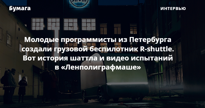 В начале декабря в технопарке «Ленполиграфмаш» прошли первые испытания беспилотного грузового автомобиля R-shuttle. Его создатели — недавние выпускники петербургских вузов. Летом 2018 года они запустили стартап Ralient, а через полтора года представили первый рабочий прототип шаттла. Предполагается, что он сможет развивать скорость до 80 км/ч.