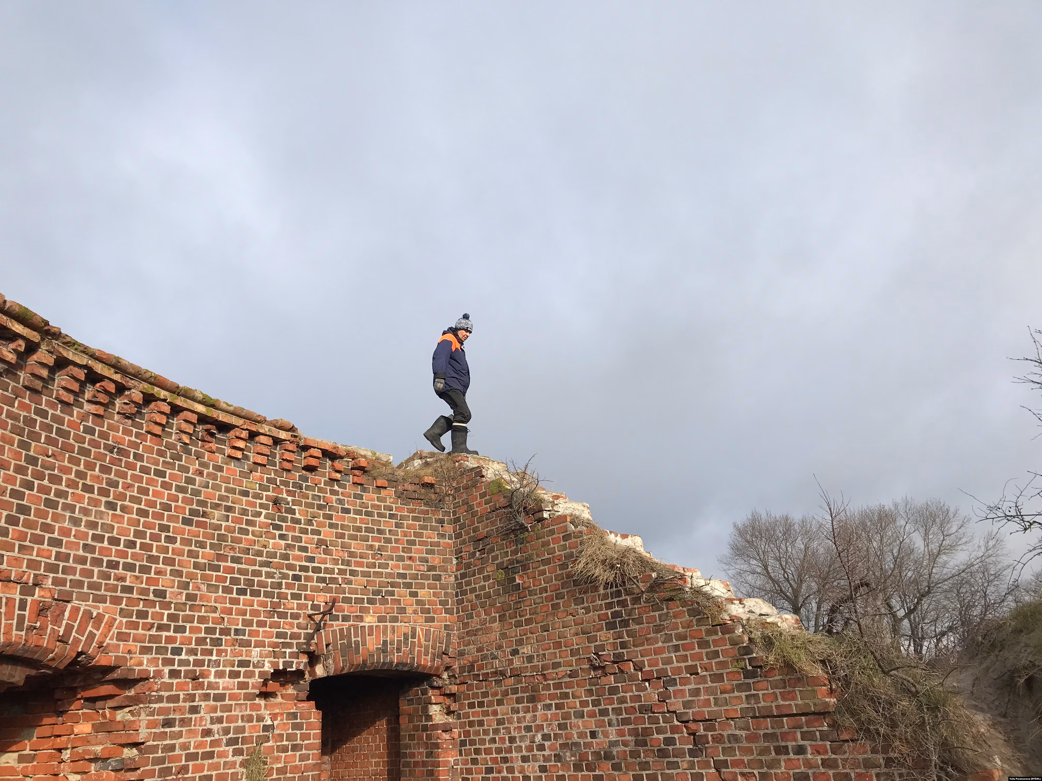 Между тем, море выворачивает деревья с корнем и вымывает дюны. Вода уже заливает немецкий Западный форт постройки второй половины XIX века. Еще несколько десятилетий назад он стоял на суше, говорит Галина Бобкова, жена Константина. Она работает в детском садике в двухстах метрах от берега. Вода зимой при сильных ветрах подходит и к детсаду, и к жилым домам.