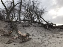 Авандюна на Балтийской косе, которую создавали последние 200 лет, разрушается под воздействием ветра и штормов. В советские годы берегоукреплением занимался местный лесхоз – в 1963 году коса получила статус заказника. В 2004 году статус был снят, а лесхоз закрыт. Про берег забыли.