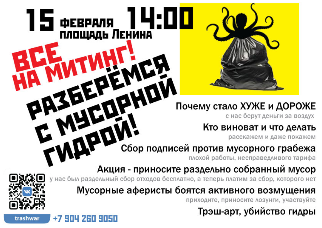 “15 февраля в 14:00 на Площади Ленина города Владимира состоится митинг «Разберёмся с мусорной гидрой!»