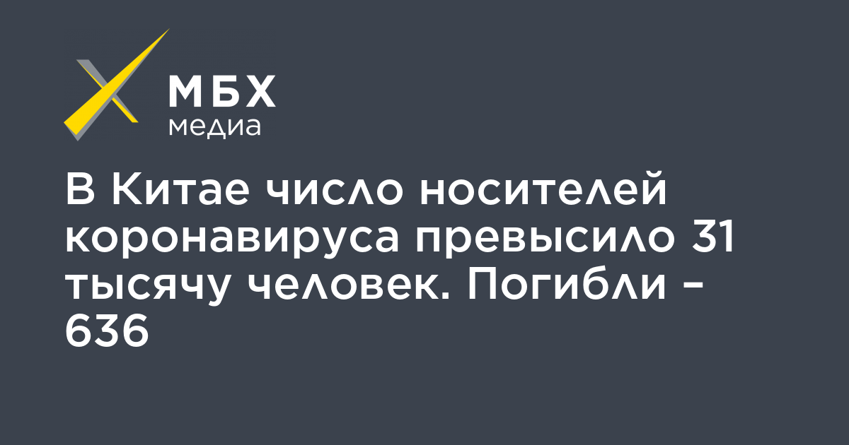 В Китае количество заболевших коронавирусом составило 31 тысячу человек, погибли – 636 человек, об этом сообщил Госкомитет КНР по делам здравоохранения, передает «Интерфакс».