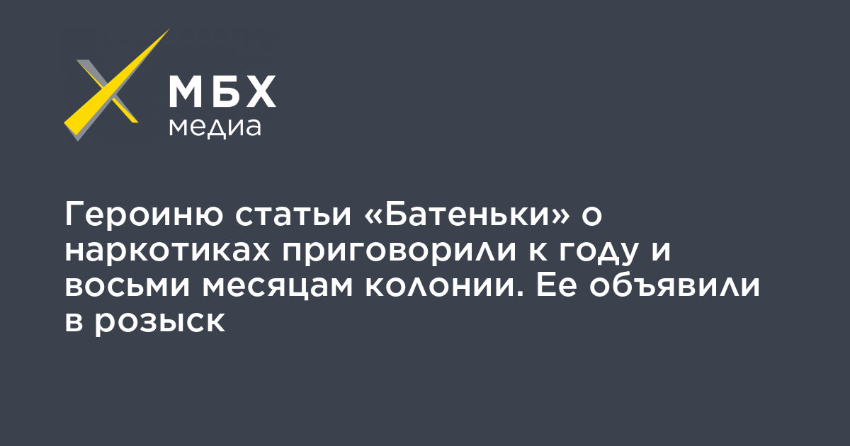 Героиню статьи «Батеньки» о наркотиках приговорили к году и восьми месяцам колонии. Ее объявили в розыск