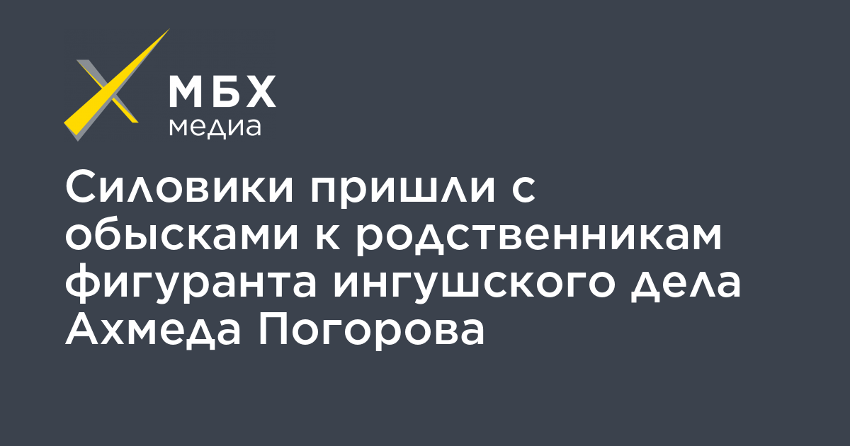 Силовики пришли с обыском к родственникам одного из фигурантов ингушского дела Ахмеда Погорова, который находится в розыске, об этом «МБХ медиа» сообщил племянник Ахмеда Погорова Рустам Погоров.