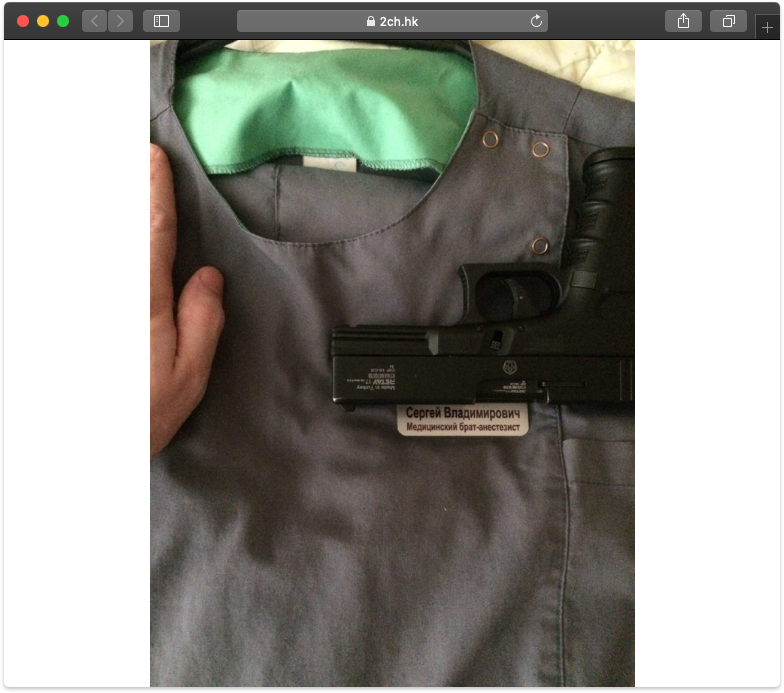 Другие пользователи форума на основе имеющихся имени, отчества и должности, указанных на бейдже, смогли вычислить личность хозяина костюма. Под эти данные подходил Сергей Владимирович Вольф — медицинский брат-анестезист КОГБУЗ «Кировский областной госпиталь для ветеранов войн», работающий по специальности анестезиология и реаниматология. Пользователи также нашли его фотографии в соцсетях и пришли к выводу, что форма руки Вольфа совпадает с рукой, заснятой на фото с бейджем.