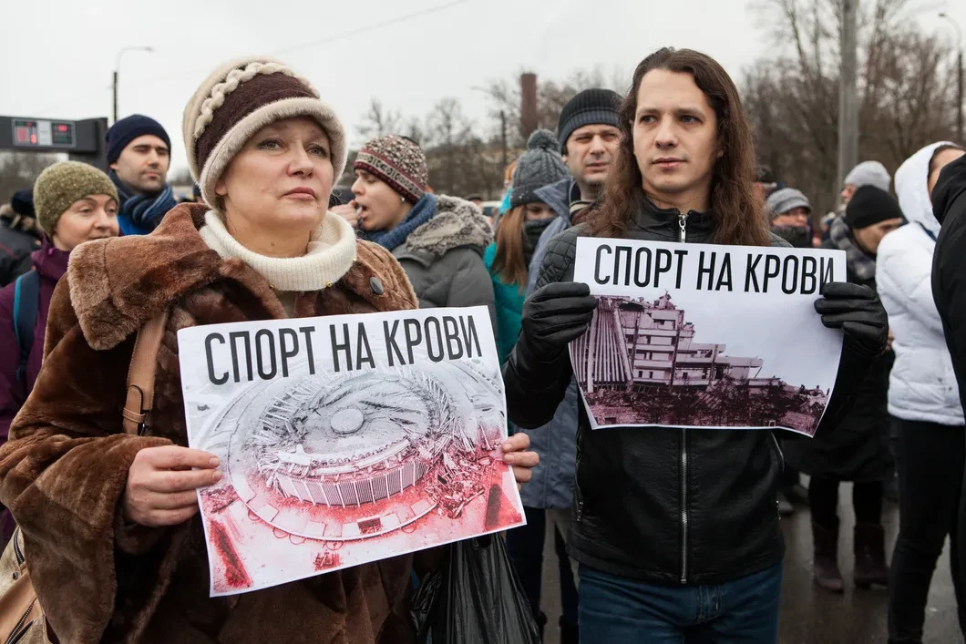 «День 31 января стал в Петербурге рубежом противостояния граждан, отстаивающих интеллектуальные ценности своего народа, и людей, пытающихся поспешно, на грани криминала, решить пусть и важные задачи ценой игнорирования национальной технической культуры», — говорится в заявлении. Петербургский союз архитекторов настаивает на восстановлении основной конструкции при строительстве новой арены.