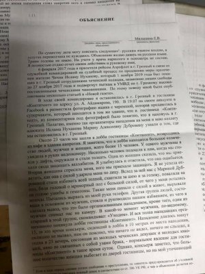 Как пишет пострадавшая в объяснении, ее и Дубровину окружили возле лифта. Предположив, что Милашина и Дубровина «приехали сюда защищать ваххабитов», напали на них. Первые удары журналистке и адвокату нанесли женщины, после чего их «стали избивать всей толпой».