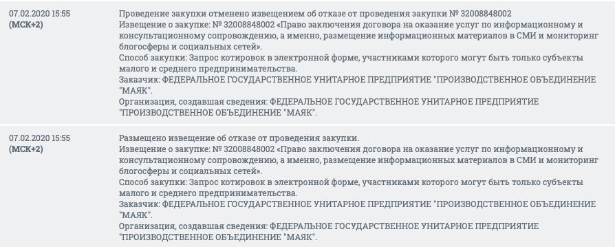 ПО «Маяк» занимается изготовлением компонентов ядерного оружия и входит в корпорацию «Росатом». 6 февраля предприятие объявило тендер на мониторинг ряда блогов, в том числе — страницы Алексея Навального.