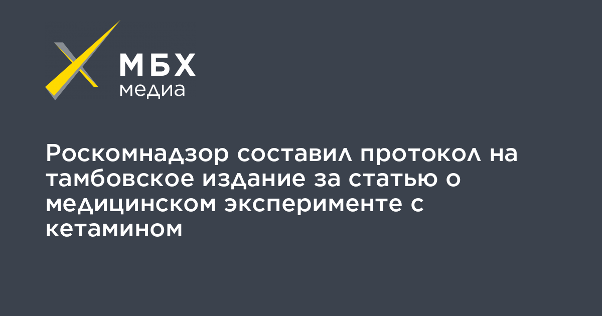 Роскомнадзор составил протокол на тамбовское издание за статью о медицинском эксперименте с кетамином