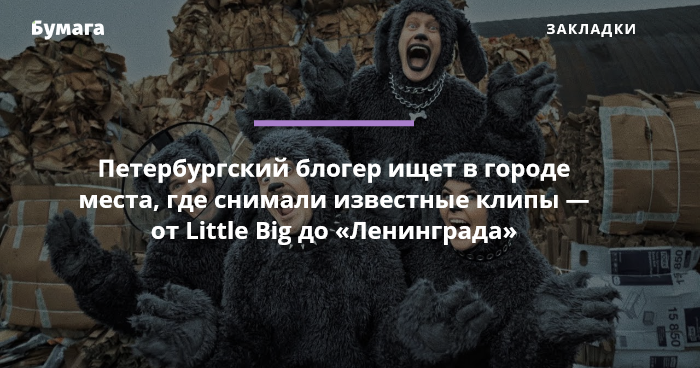 Петербургский блогер Vlad Slav создает ролики под названием «По следам», в которых показывает о местах съемок известных клипов. Сейчас в рубрике три видео — про «Ленинград», Little Big и Данила Кашина (DK).