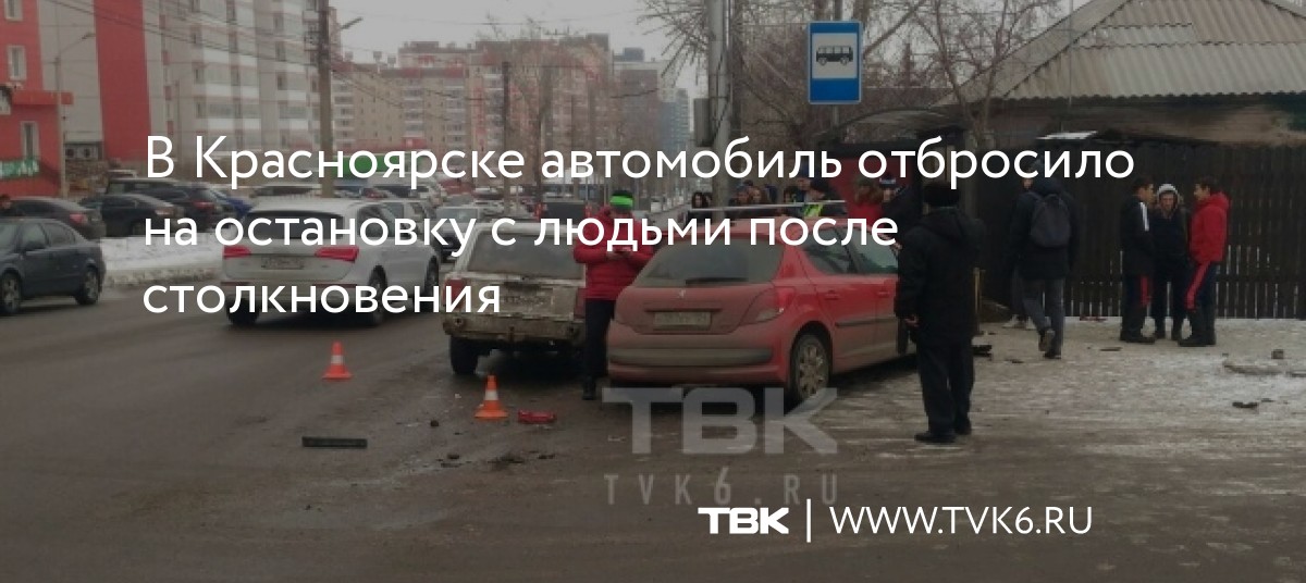 В Красноярске автомобиль отбросило на остановку с людьми после столкновения