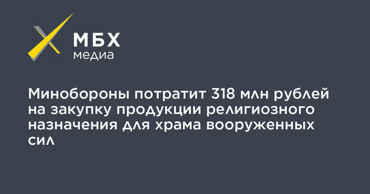 Управление имуществом специальных проектов Минобороны потратит почти 318 млн рублей на закупку продукции религиозного назначения и изделий из гипса для Главного храма вооруженных сил. Соответствующие тендеры «МБХ медиа» обнаружило на портале госзакупок.