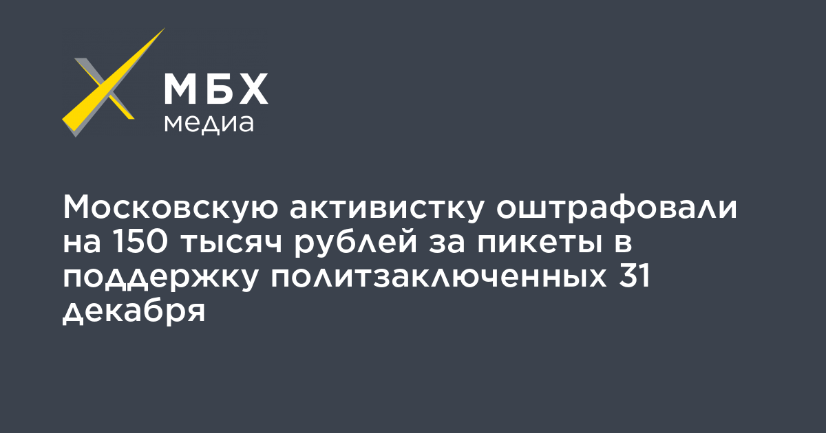 Московскую активистку оштрафовали на 150 тысяч рублей за пикеты в поддержку политзаключенных 31 декабря