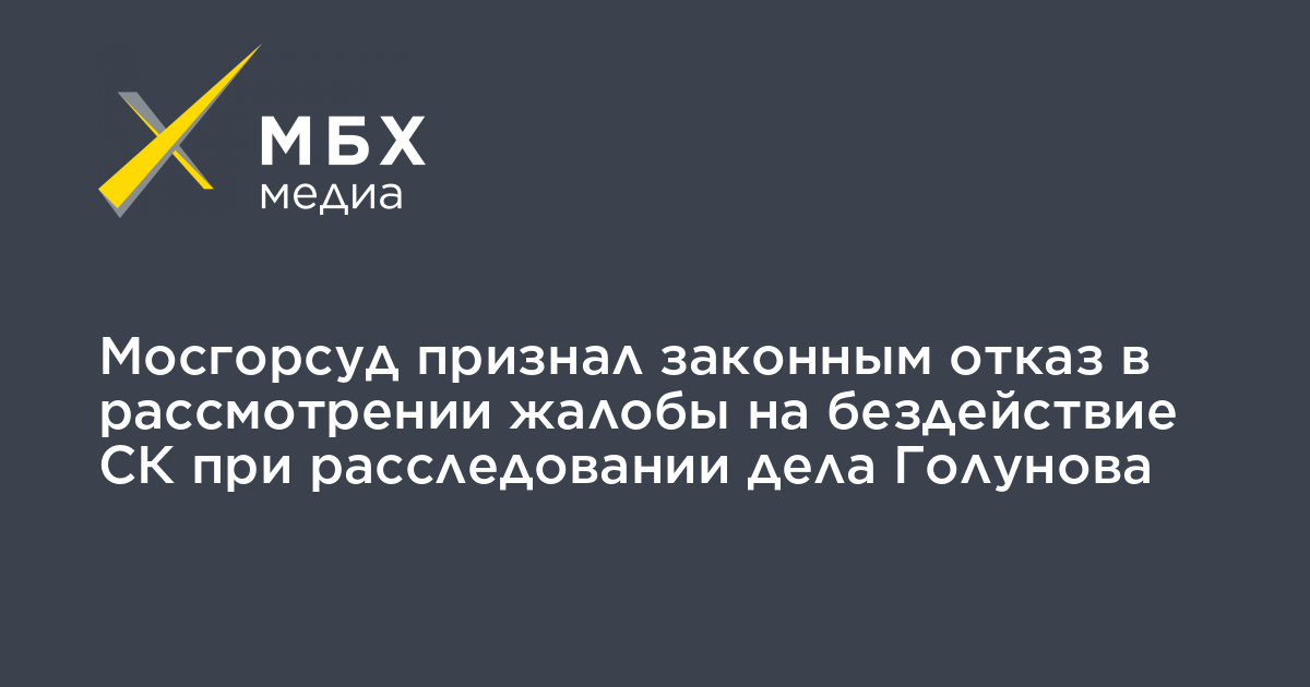 Мосгорсуд признал законным отклонение жалобы на бездействие Следственного комитета при расследовании дела журналиста Ивана Голунова, об этом «МБХ медиа» сообщил адвокат «Правозащиты Открытки» Сергей Бадамшин.