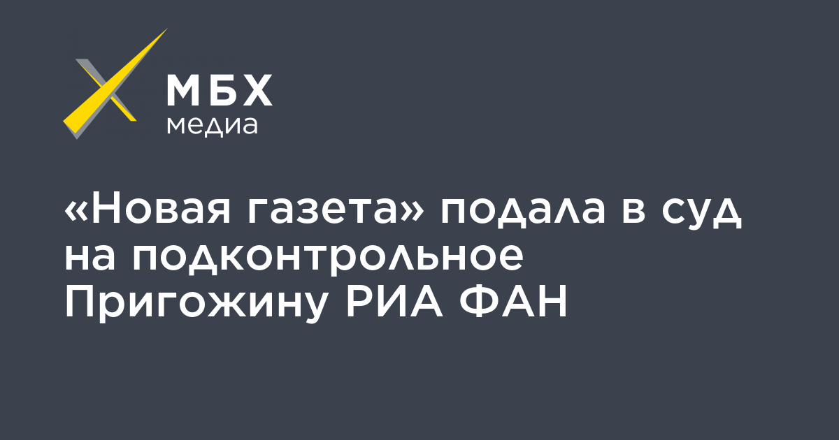 «Новая газета» подала в суд на подконтрольное Пригожину РИА ФАН