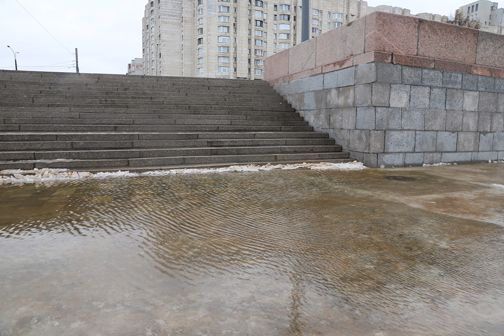 В некоторых местах набережная до сих пор затоплена. Корреспондентка «Бумаги» говорит, что передвигаться по ней можно, но «не очень приятно».