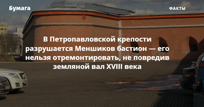 «Бумага» рассказывает, что известно о ситуации с Меншиковым бастионом.