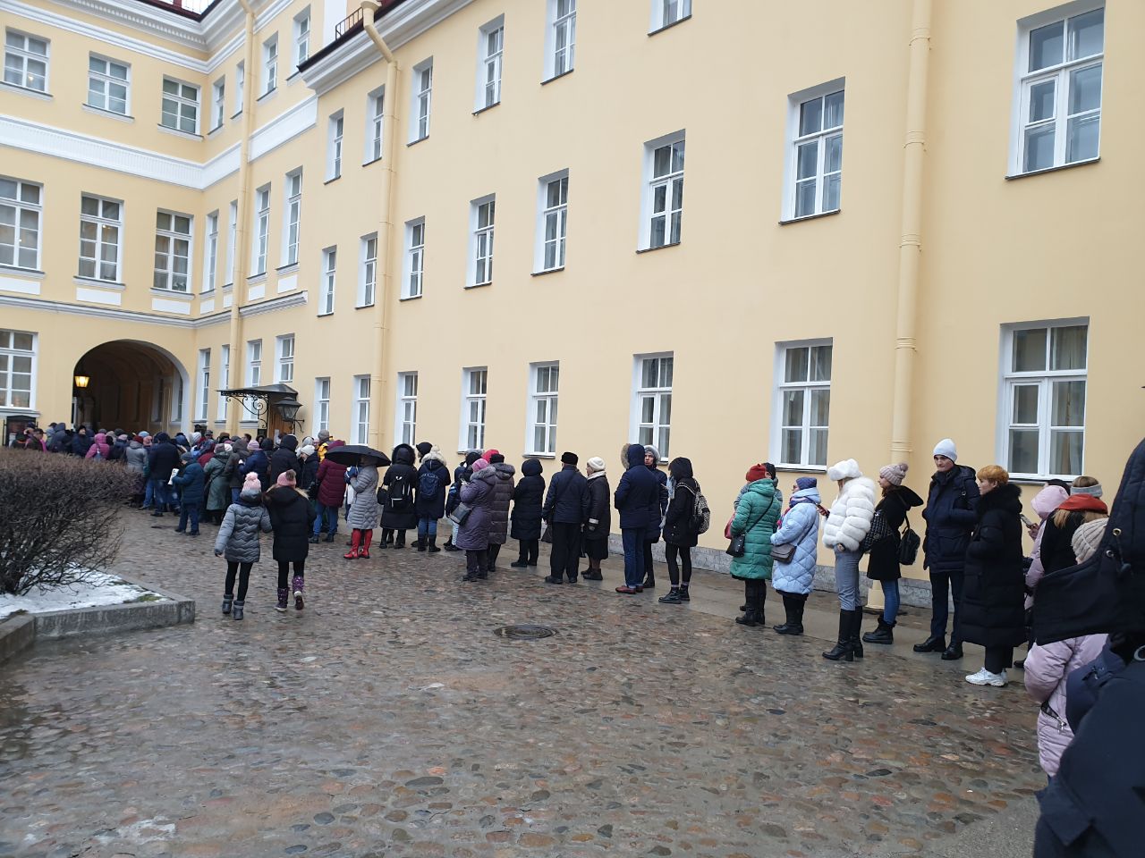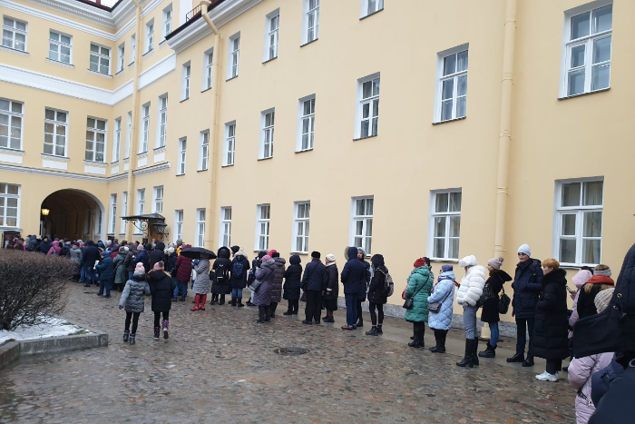Петербуржцы выстроились в очередь в музей-квартиру Александра Пушкина на набережной Мойки, 12. Фотографии толпы опубликовала «Фонтанка».