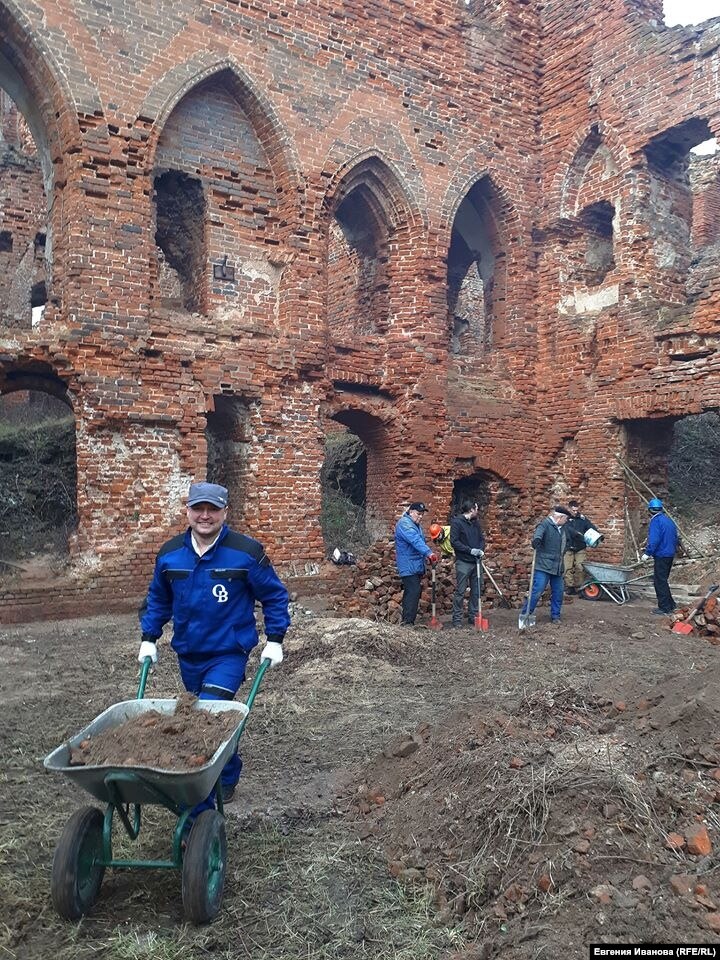 Волонтеры каждые выходные расчищают территорию замка. Среди них и пожилые местные жители, и подростки, отбывающие наказание в школе закрытого типа. "Сейчас надо остановить разрушение. Зальём входную группу специальным составом, так как кирпич выпадает, к сожалению, — рассказал Артюх. — К маю хотим завершить первые масштабные работы. Тогда мы будем проводить здесь экскурсии".