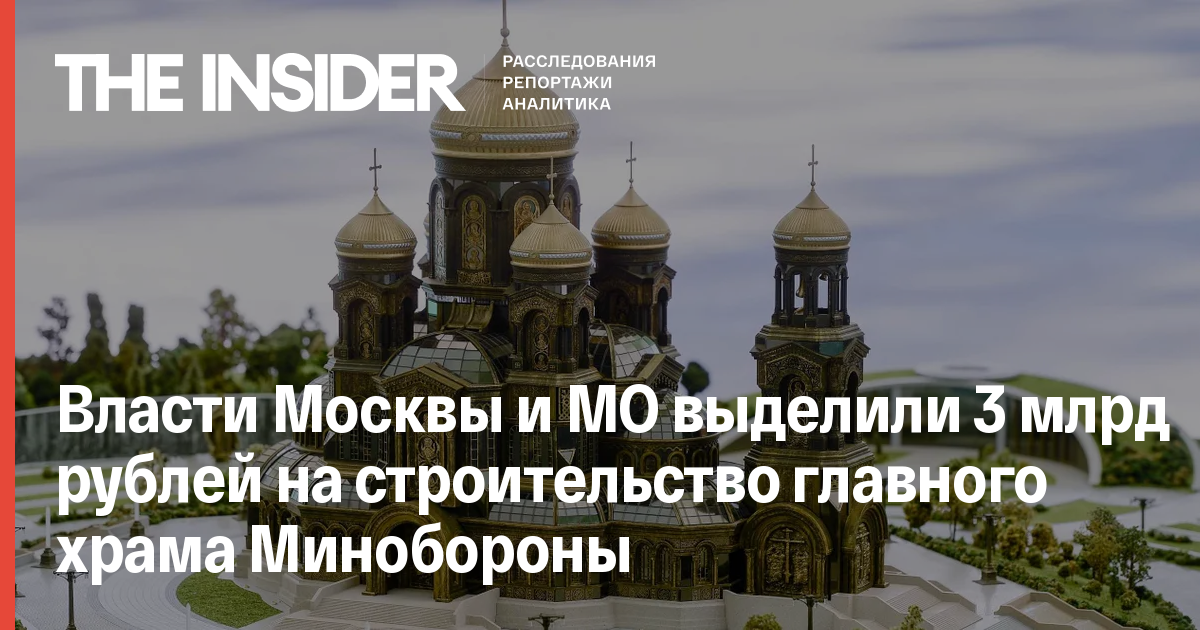 Правительства Москвы и Московской области в 2019 году выделили около 3 млрд рублей благотворительному фонду «Воскресение», собирающему деньги на строительство главного храма Вооруженных сил России. Соответствующие распоряжения властей обнаружил Znak.com.