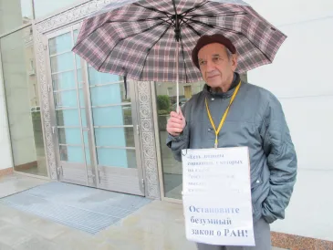 Пикет под дождем, сентябрь 2013 года. Протест против «реформы РАН». Фото Наталии Деминой