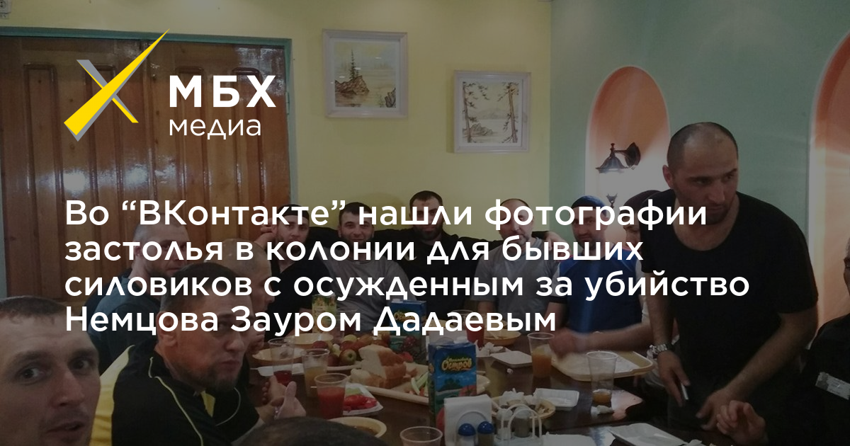 Во «ВКонтакте» нашли фотографии застолья в колонии для бывших силовиков, среди которых был осужденный за убийство политика Бориса Немцова Заур Дадаев. Об этом сообщает Scanner Project.