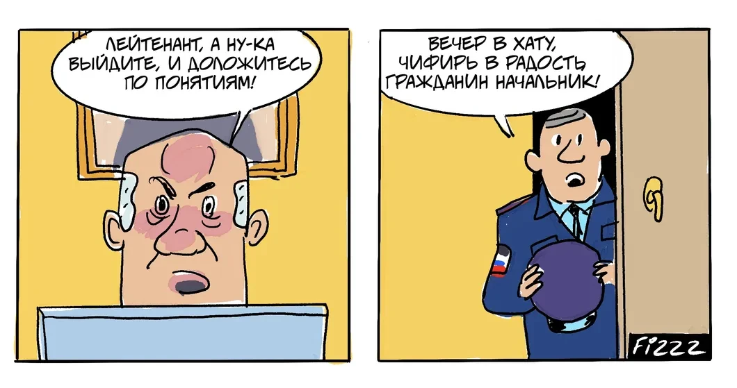 Художник Fizzz решил проследить, как понятия заменяют закон «О полиции» в высоких кабинетах МВД. Специально для «Новой».
