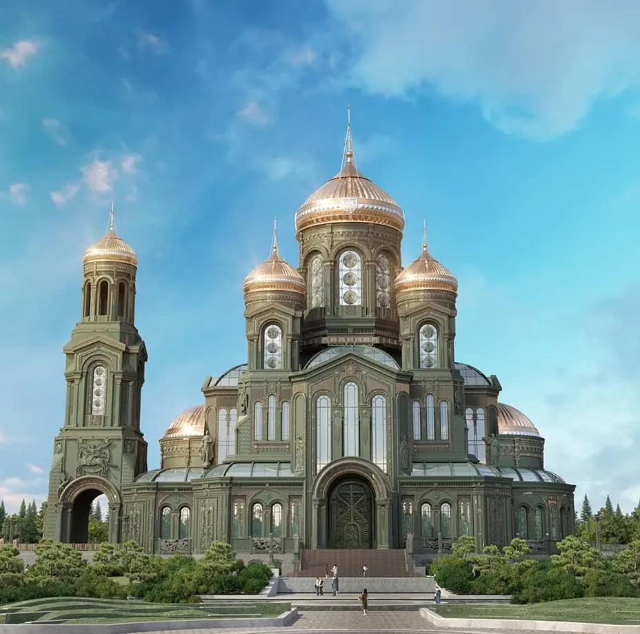 Диаметр его купола не связан с символикой библейских чисел; он составляет 19,45 метра, как бы воспроизведя таким странным образом год Великой Победы. Высота звонницы — 75 метров, в честь 75-летия Великой Победы, высота малых куполов — 14,18 метра — по числу дней войны (по версии СССР, куда не включается, скажем, 1939 год). К храму ведет «Дорога памяти» длиною в те же 1418 шагов (на ней, помимо прочего, будет размещен портрет отца Владимира Путина); росписи на его стенах — батальные сцены главных сражений войны, включая совершенно мифологические, типа «Подвига героев-панфиловцев». Если бы тысячу лет назад Киевская Русь не приняла православие, то гораздо органичнее выглядело бы посвящение такого объекта Марсу или хотя бы Перуну, ведь Христос совсем не учил войне за мировое господство и строительству сильных империй...