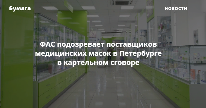 ФАС подозревает поставщиков медицинских масок в Петербурге в картельном сговоре