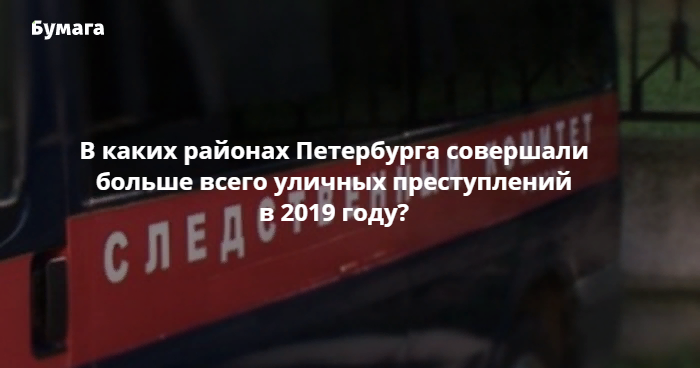Всего за 2019 год в Петербурге зарегистрировали 12 тысяч уличных преступлений. В абсолютных цифрах (без учета густонаселенности) наибольшее количество таких преступлений совершили в Невском, Калининском и Выборгском районах (1622, 1386 и 1212 соответственно). Меньше всего их совершили в Кронштадтском и Петродворцовом районах (82 и 244).