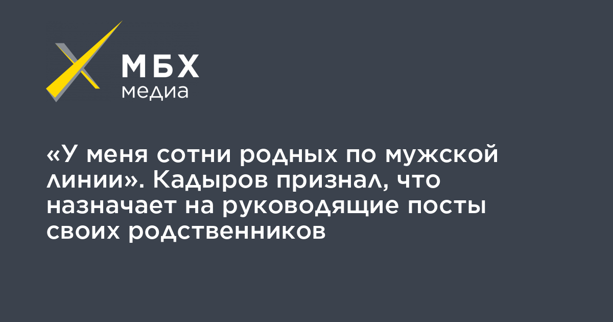Глава Чечни Рамзан Кадыров признал, что назначает на руководящие посты республики своих родственников, об этом он заявил на заседании регионального правительства, сообщает «Кавказ.Реалии».