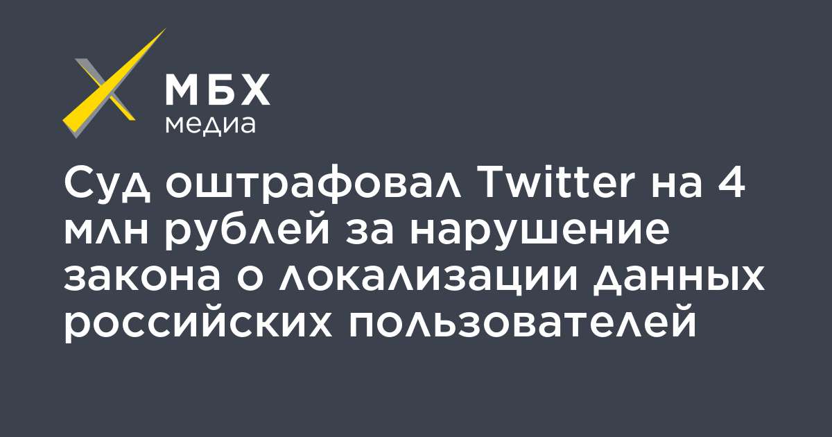 Мировой суд Таганского района Москвы оштрафовал Twitter на 4 млн рублей по статье о нарушении законодательства в области персональных данных (часть 8 статьи 13.11 КоАП). Об этом сообщает корреспондент «МБХ медиа».