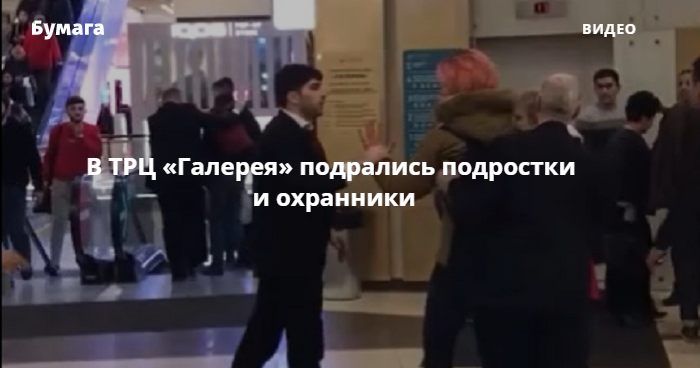 Вечером 12 февраля в центре Петербурга, на входе в ТРЦ «Галерея», произошла драка между тремя несовершеннолетними и двумя охранниками центра. Об этом сообщает ГУ МВД по Петербургу и Ленобласти.