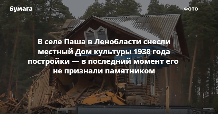 В селе Паша Ленинградской области снесли местный Дом культуры — голубое деревянное здание с колоннами. Об этом сообщили в движении «Живой город».