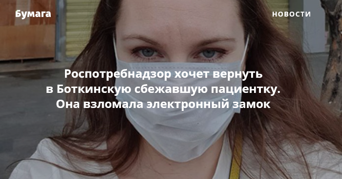 Роспотребнадзор хочет вернуть в Боткинскую больницу пациентку Аллу Ильину, которая сбежала из карантинного бокса, взломав электронный замок. Информация об этом опубликована на сайте ведомства.