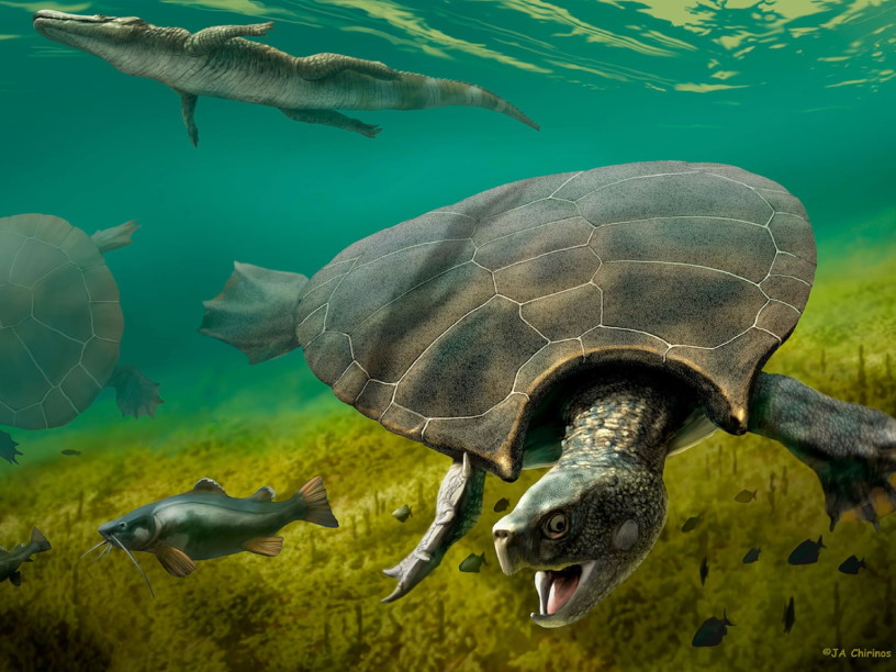 Ученые обнаружили новые окаменелости ступендемиса — одной из самых больших когда-либо существовавших черепах, обитавшей в озерах и реках северной части Южной Америки от 13 до 7 миллионов лет назад. Находки помогли установить неизвестные ранее детали образа жизни этих черепах.