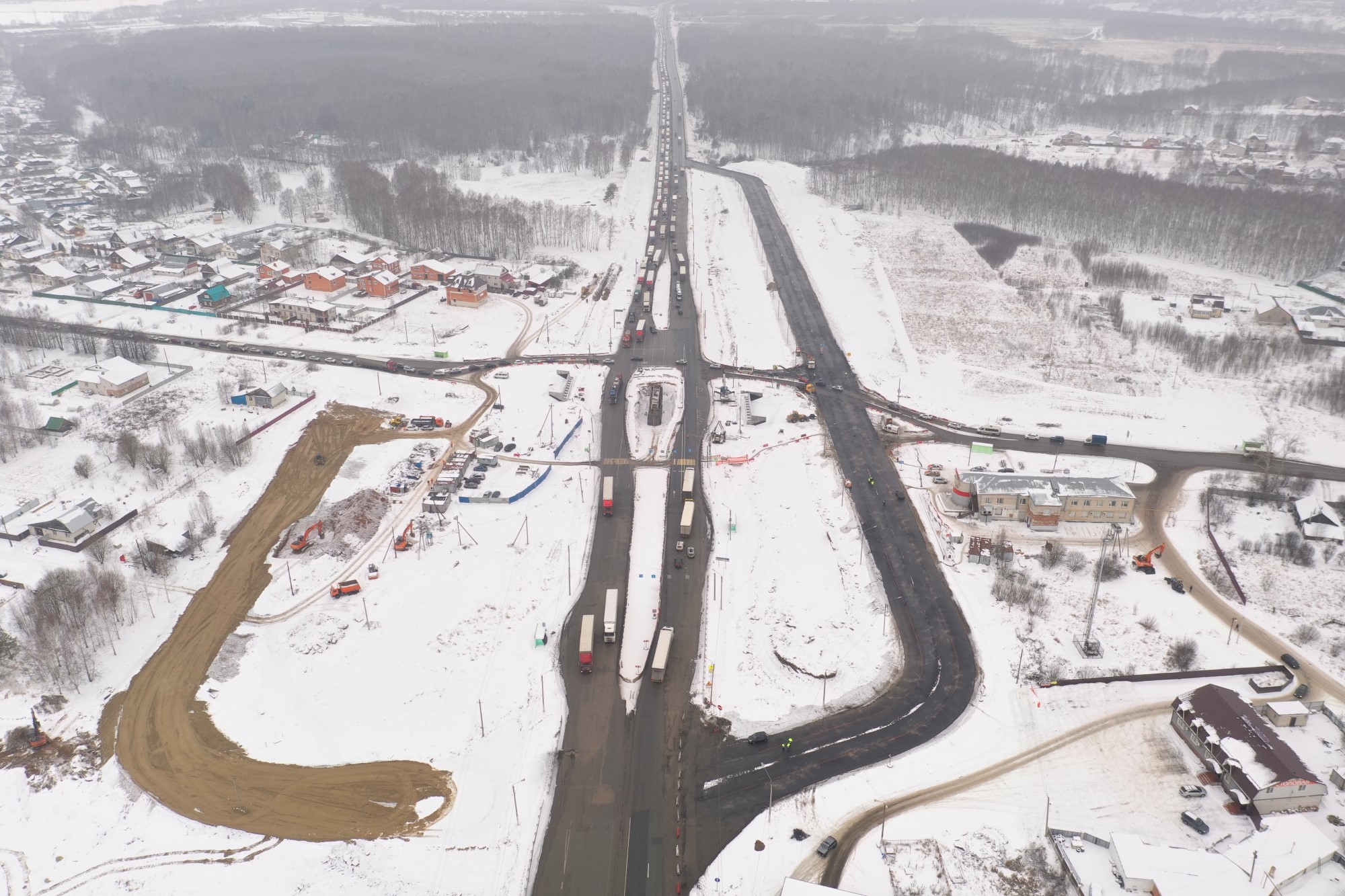 Строительство двухуровневой транспортной развязки закончится в декабре 2020 года. Она позволит развести потоки транзитного и городского транспорта, обеспечив сквозной проезд по федеральной трассе.