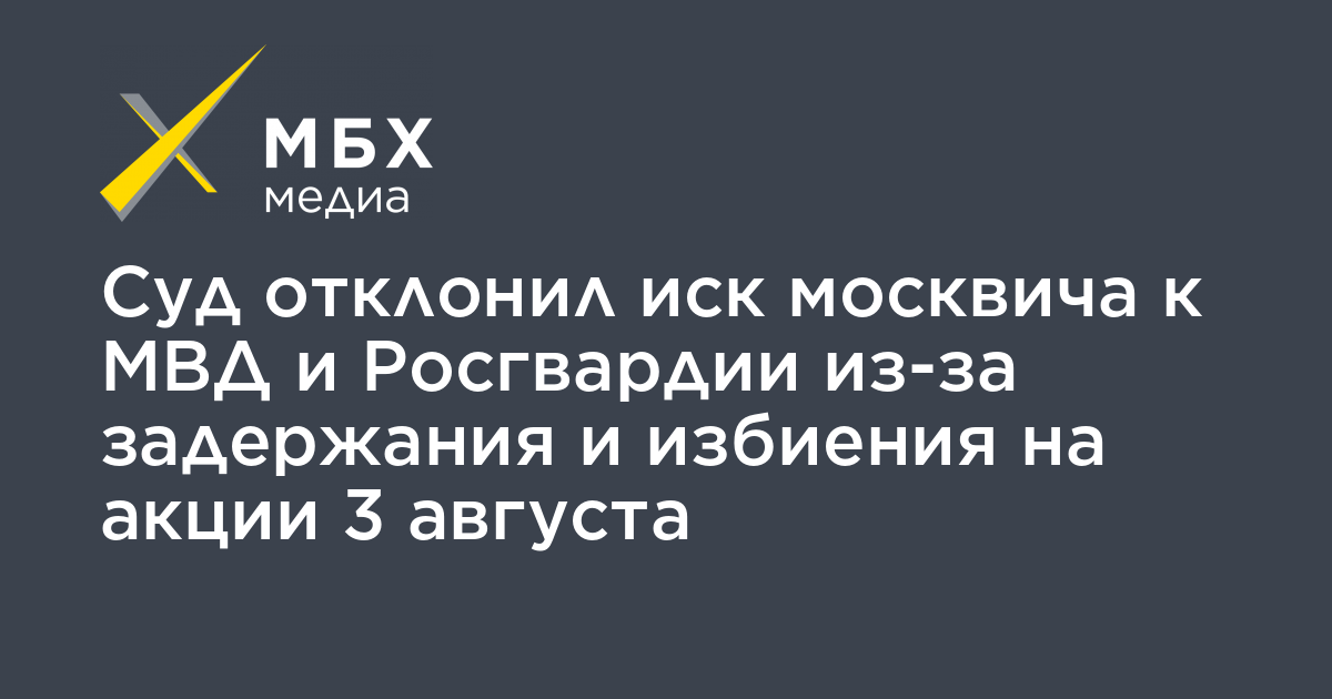 Хорошевский районный суд отклонил иск москвича Максима Гришенкова к столичным управлениям МВД и Росгвардии с требованием признать незаконным его избиение и задержание на акции за свободные выборы 3 августа. Об этом сообщает корреспондент «МБХ медиа».